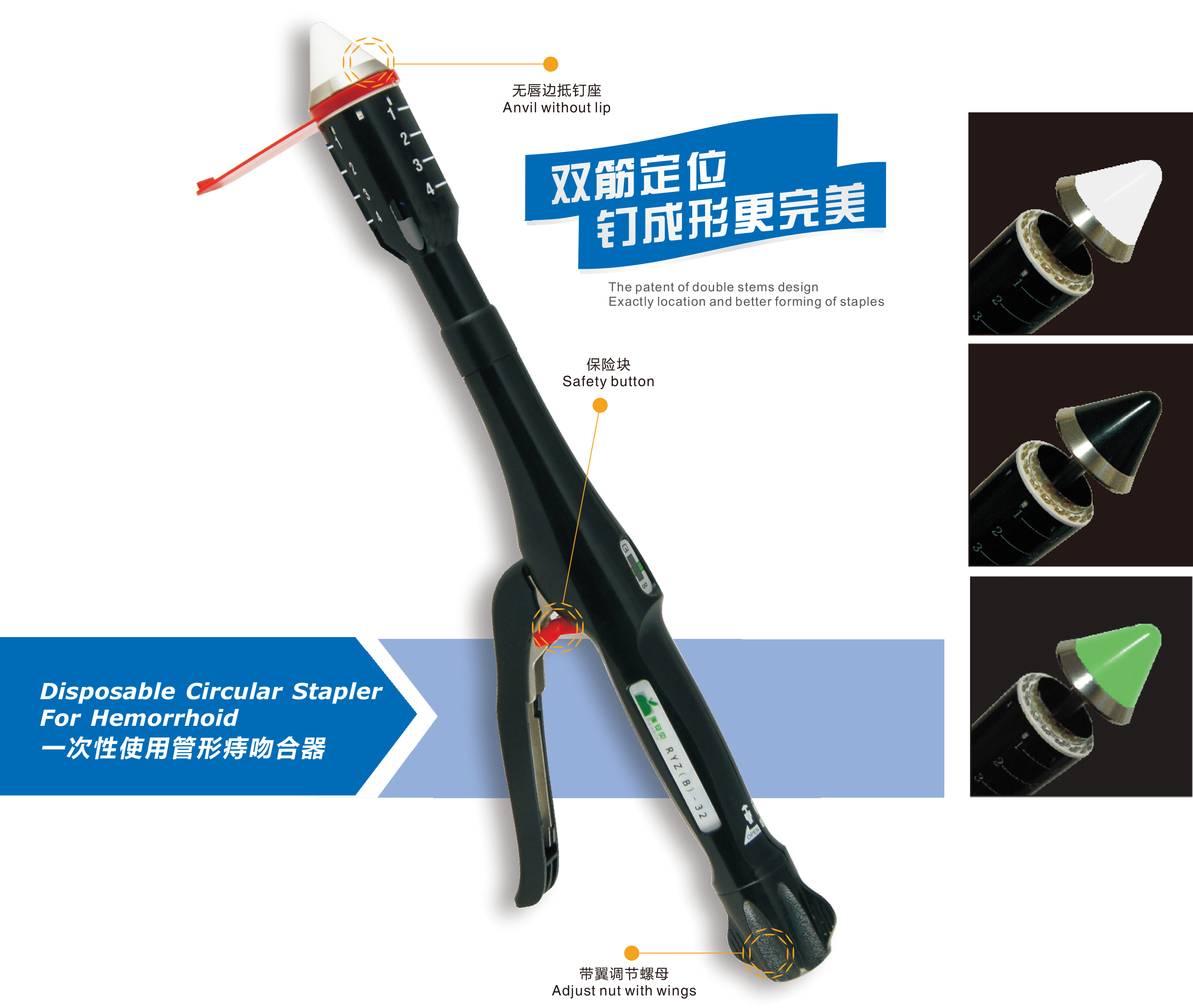 型號(hào) 釘倉(cāng)色別 釘高(mm) 吻合釘數(shù)量 外徑(mm) 吻合口內(nèi)徑(mm)